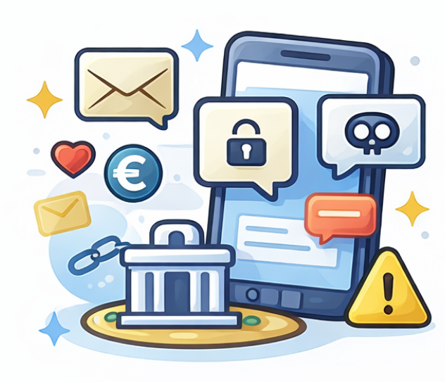 Utilizzo di piattaforme social e app di messaggistica per diffondere link, offerte o richieste fraudolente.